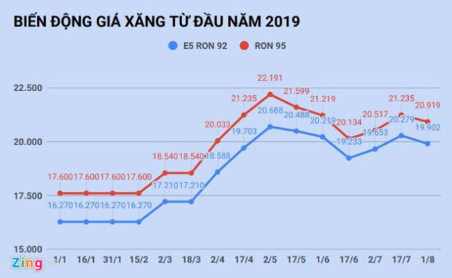 Trong chu kỳ này, giá xăng giảm từ 4,95-5,55% so với chu kỳ trước, như...